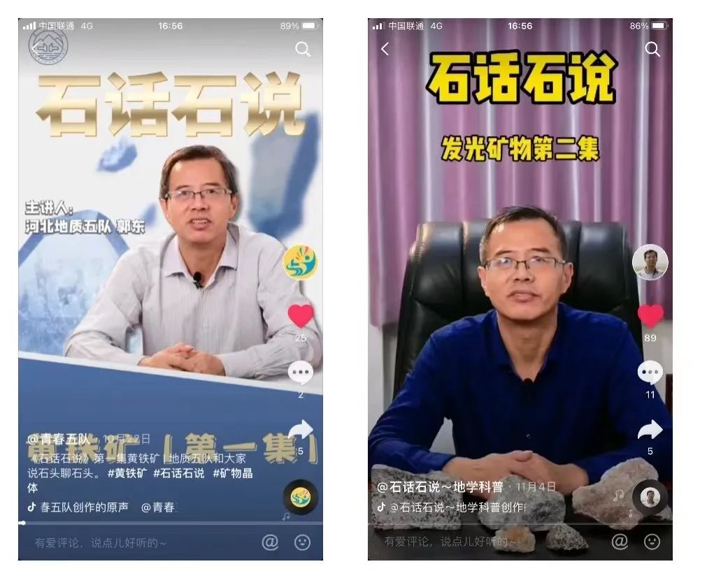 線上與線下的交相輝映,讓科普工作的開展更具特色。利用抖音平臺開辦“石話石說”地學科普欄目,75期欄目,2530個專粉,6563個贊,總瀏覽量20余萬次。科普人員用通俗易懂的語言講解美麗的礦物、多彩巖石與人類生活的密切關系,受到大眾的廣泛喜愛,其中有6期作品更是被“學習強國”唐山地方平臺轉載發布。