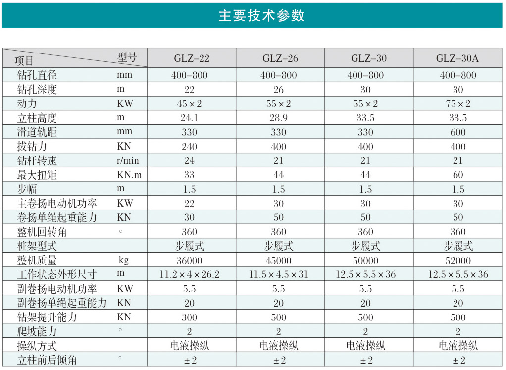 GL Z系列長(zhǎng)螺旋鉆孔機(jī)是電液操縱、步履式行走、180度回轉(zhuǎn)、伸縮式斜撐連續(xù)起落樁架、中空式輸出軸三環(huán)減速:器動(dòng)力頭為主要特征的新型的新型樁工機(jī)械。主機(jī)安裝于液壓步履式底盤(pán)上,靠機(jī)、電、液完成架樁起落,鉆具鉆進(jìn)、提升、下降,整機(jī)行走、回轉(zhuǎn)、就位。該機(jī)可實(shí)現(xiàn)半解體拖掛運(yùn)輸轉(zhuǎn)場(chǎng)。該機(jī)適用于粘土層、礫石層、砂土、濕陷性黃土及含有少量粘土層,亦適用于地下水位較高地層,除可進(jìn)行一般長(zhǎng)螺旋干法施工外,還可進(jìn)行CFG工法和注漿工法施工,改變鉆具宜可進(jìn)行深層攪拌施工。